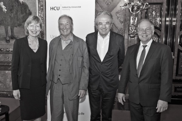 v.l.n.r. Senatorin Dr. Stapelfeldt, Prof. Volkwin Marg, Prof. Dr. Werner Sobek, Universitätspräsident Dr. Walter Pelka FIM: